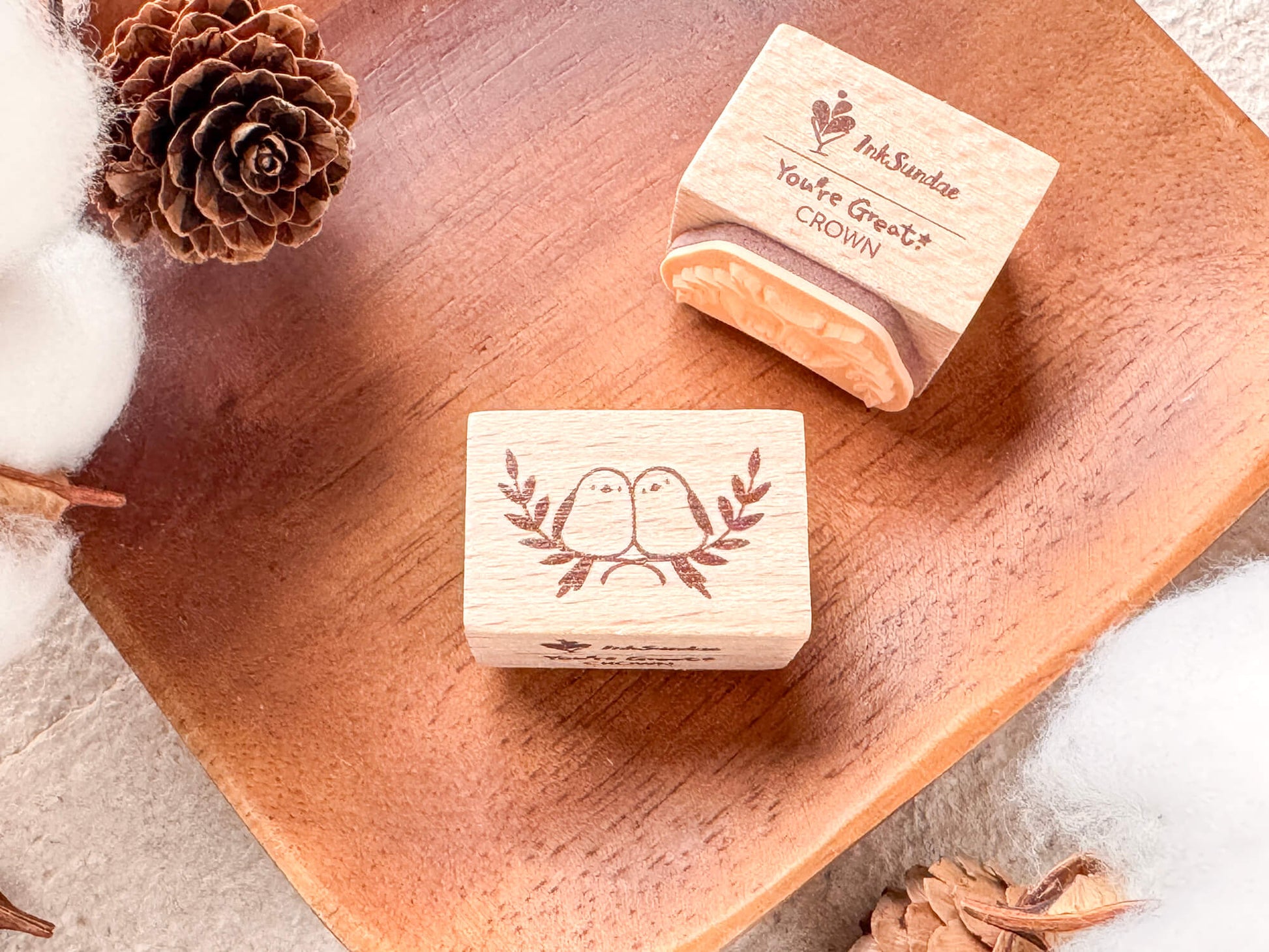 - Materials: rubber stamp with maple wooden handle